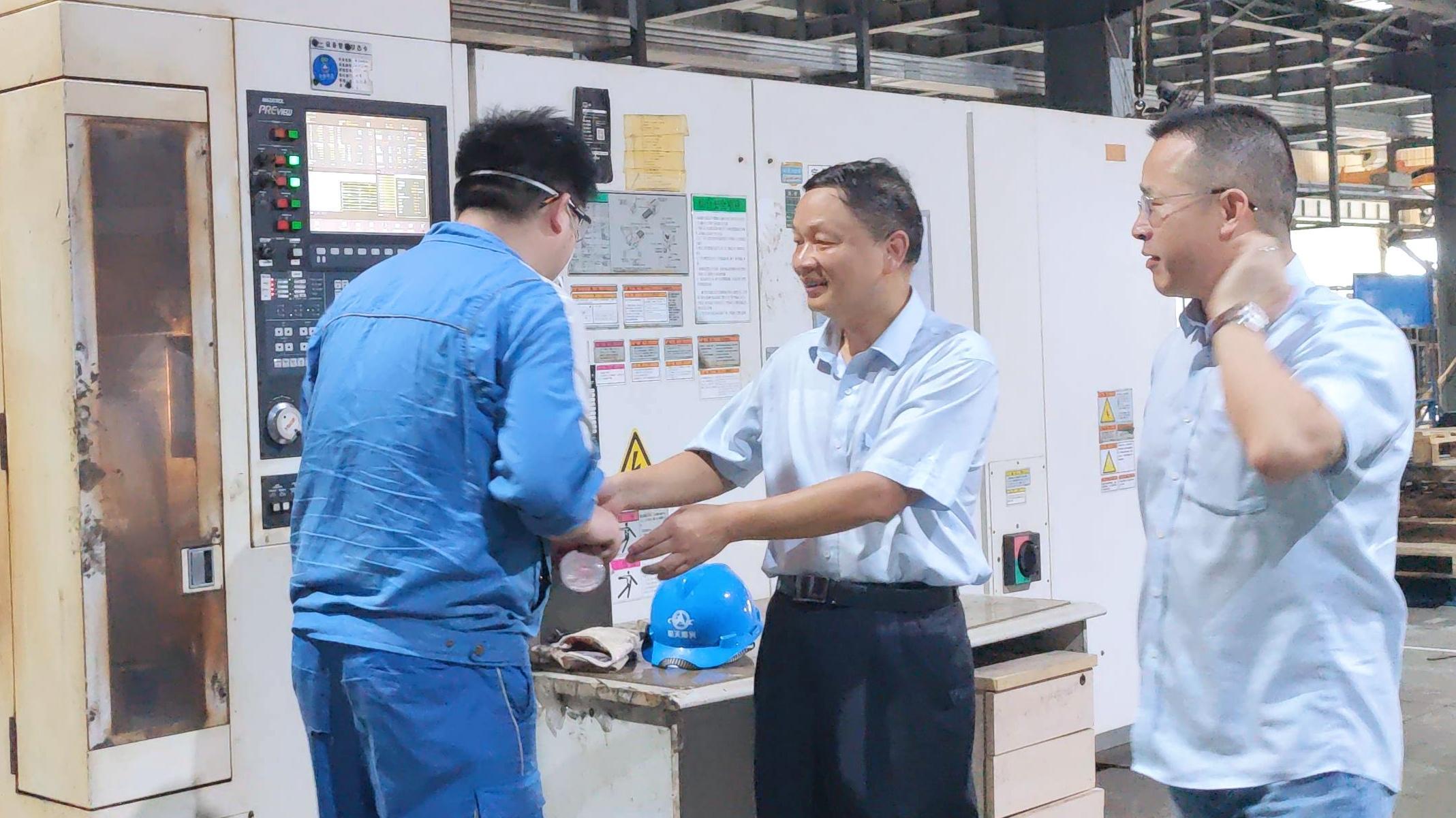 文樹梁一行深入晨光森田生產(chǎn)車間,實(shí)地查看了晨光森田各生產(chǎn)班組,詳細(xì)了解了科研生產(chǎn)、在手任務(wù)、產(chǎn)品質(zhì)量管控、新產(chǎn)品自主研制和安全生產(chǎn)等情況,并代表公司黨委對(duì)高溫下辛勤工作的一線人員進(jìn)行慰問。