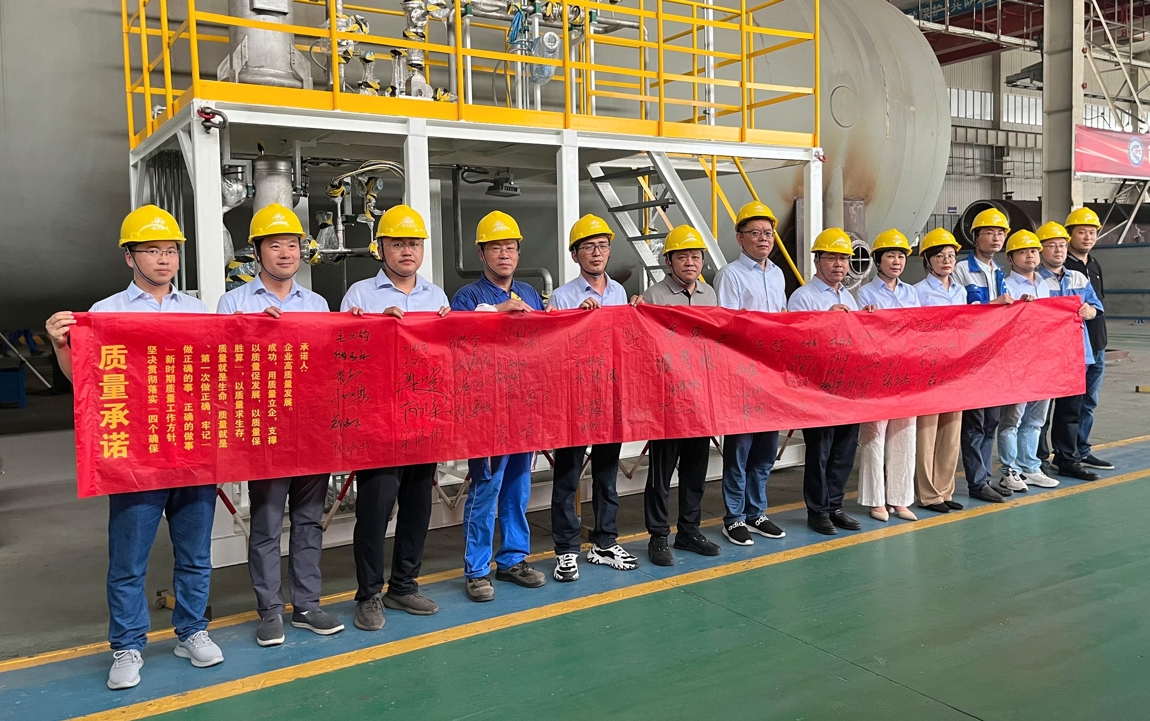 千人來簽名,質量我承諾,公司組織開展千人質量承諾活動,倡議全體職工“人人關心質量、人人重視質量、人人追求質量”,并向相關方和公司做出鄭重承諾。質檢中心編印發(fā)放《質檢中心工作指導手冊》,各派駐檢驗組紛紛在宣傳橫幅上留名,做出“牢記職責使命、堅守職業(yè)操守、敬畏產品質量”的莊嚴承諾。防務中心、化機分公司、上海分公司、晨光東螺、晨光森田等單位主要領導帶頭,在質量承諾條幅上鄭重簽字承諾,不忘承諾和初心,牢記自己的質量責任。