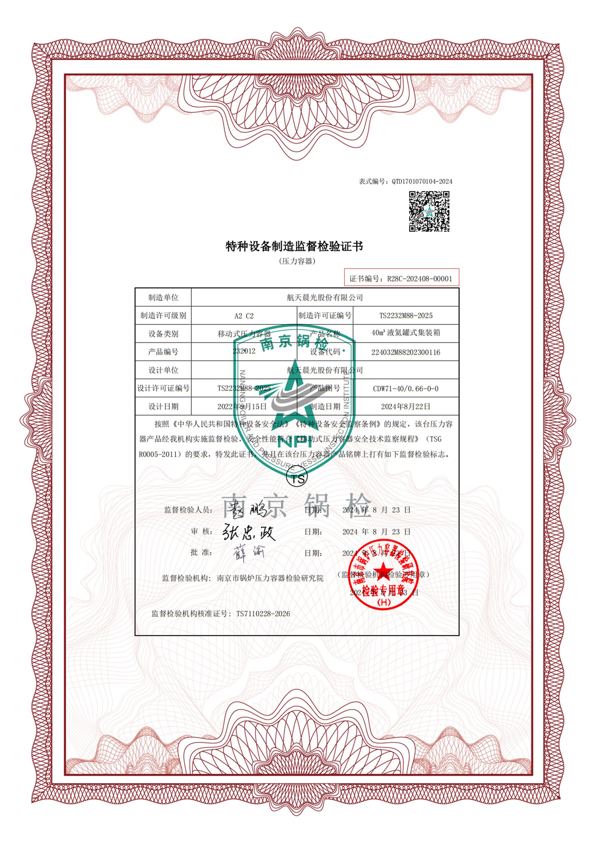 近日,公司設(shè)計(jì)制造的“40m3液氦罐式集裝箱”成功獲得南京市鍋爐壓力容器檢驗(yàn)研究院頒發(fā)的《特種設(shè)備制造監(jiān)督檢驗(yàn)證書》,這一成果標(biāo)志著公司邁向高端裝備制造領(lǐng)域的技術(shù)實(shí)力再獲權(quán)威認(rèn)證,解決了長(zhǎng)期以來只能以“租借國(guó)外液氦罐箱”的方式進(jìn)口液氦的“卡脖子”難題。