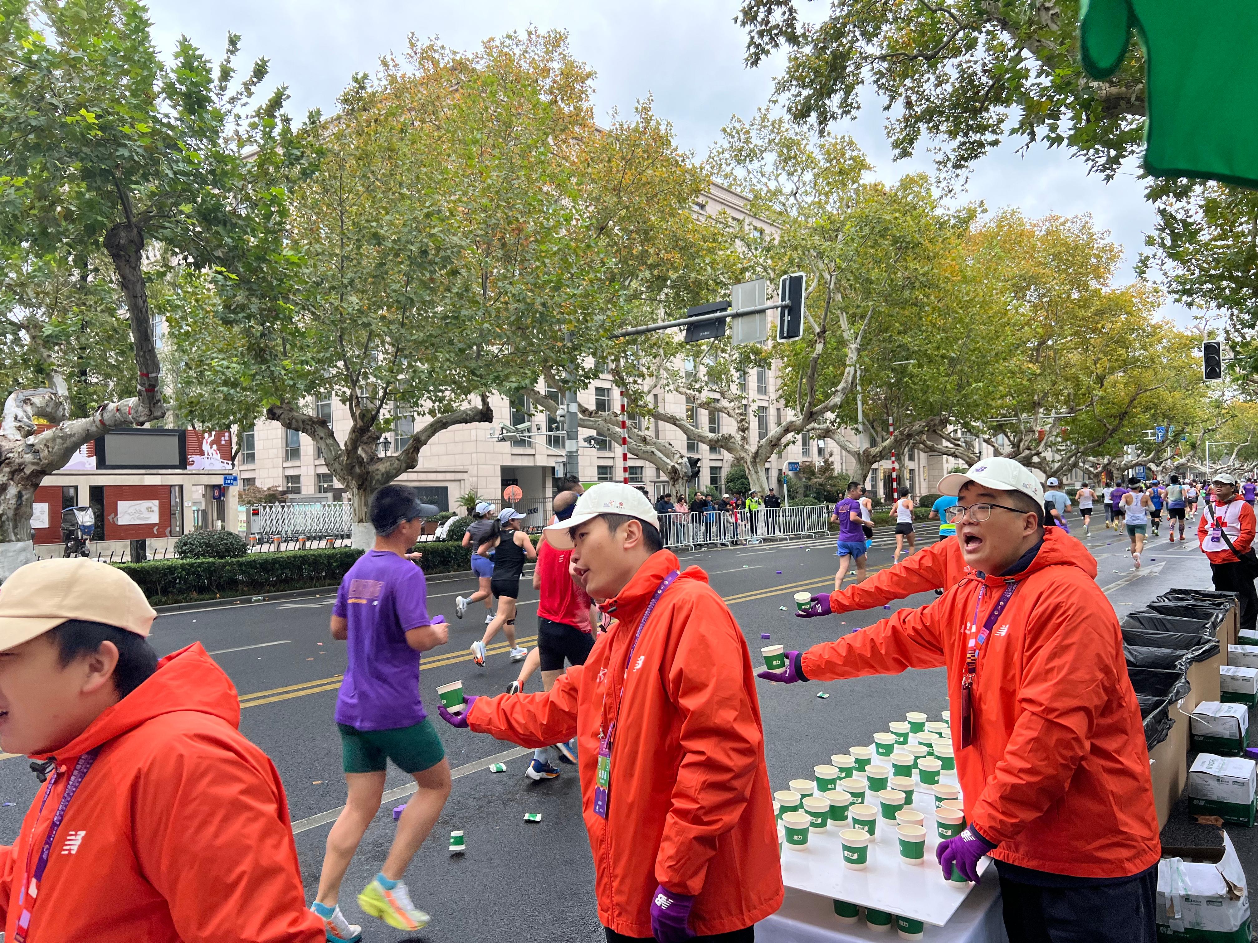 公司青年志愿者的責(zé)任點(diǎn)為11km補(bǔ)給點(diǎn),負(fù)責(zé)為參賽選手提供飲用水、功能飲料等。比賽當(dāng)日凌晨5點(diǎn)左右,志愿者們?cè)缭鐏?lái)到服務(wù)點(diǎn)位,扛桌子、搬飲料、鋪?zhàn)啦迹蠹腋魉酒渎殻挥行虻亻_(kāi)始上崗準(zhǔn)備工作。賽道上的參賽選手奮勇?tīng)?zhēng)先,賽道旁的志愿者們熱情洋溢。比賽過(guò)程中,志愿者們不辭辛勞,忙碌地將一杯杯水、一個(gè)個(gè)補(bǔ)給品遞送至參賽者手中,并為他們加油打氣。大家以高度負(fù)責(zé)的態(tài)度、飽滿(mǎn)的熱情全身心投入到志愿服務(wù)中,充分展現(xiàn)了航天青年昂揚(yáng)向上的青春風(fēng)采和精神風(fēng)貌。不少參賽選手對(duì)志愿者們投以微笑,并對(duì)他們的貼心服務(wù)表示感謝和贊揚(yáng)。