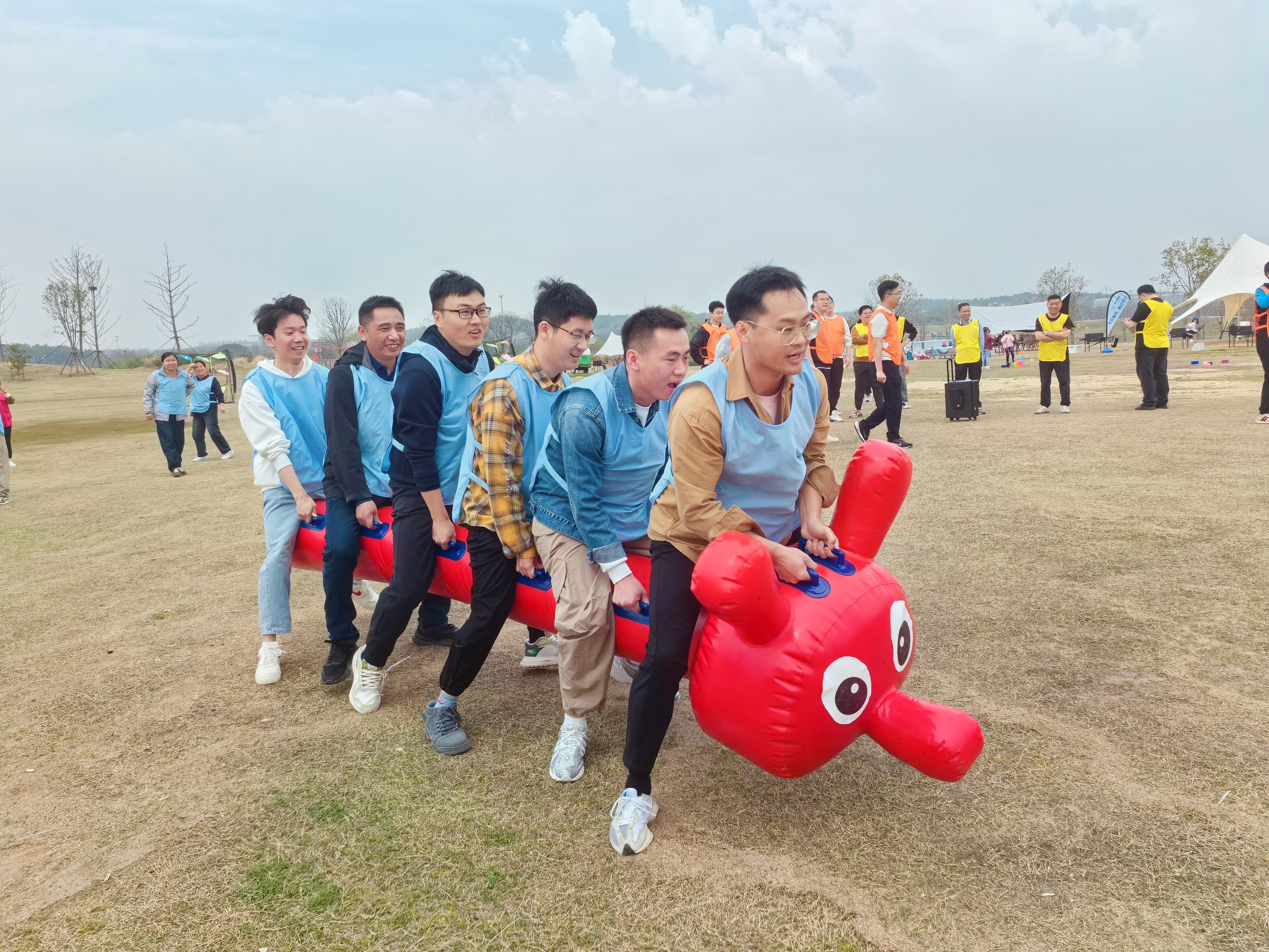 在愜意閑適的湖邊徒步熱身后,大家在寬闊平整的綠茵草地上正式開啟此次戶外團建。活動開始,大家分成紅、黃、橙、藍四色小組,各組隊員在組長的指揮和布陣下,通力合作,角逐壘方塊、連連看、拋飛盤等團隊競賽的魁首。在這些充滿創(chuàng)意與趣味的活動中,合作與競爭巧妙融合,同事之間的距離被悄然拉近;當隊員不慎跌倒落后時,大家相互鼓勵,起身再戰(zhàn);當團隊頻頻得分領先時,大家擊掌擁抱,歡呼雀躍,現(xiàn)場喝彩之聲此起彼伏,各隊成員密切配合,展現(xiàn)出高效一致的執(zhí)行力和協(xié)助配合的團隊精神。