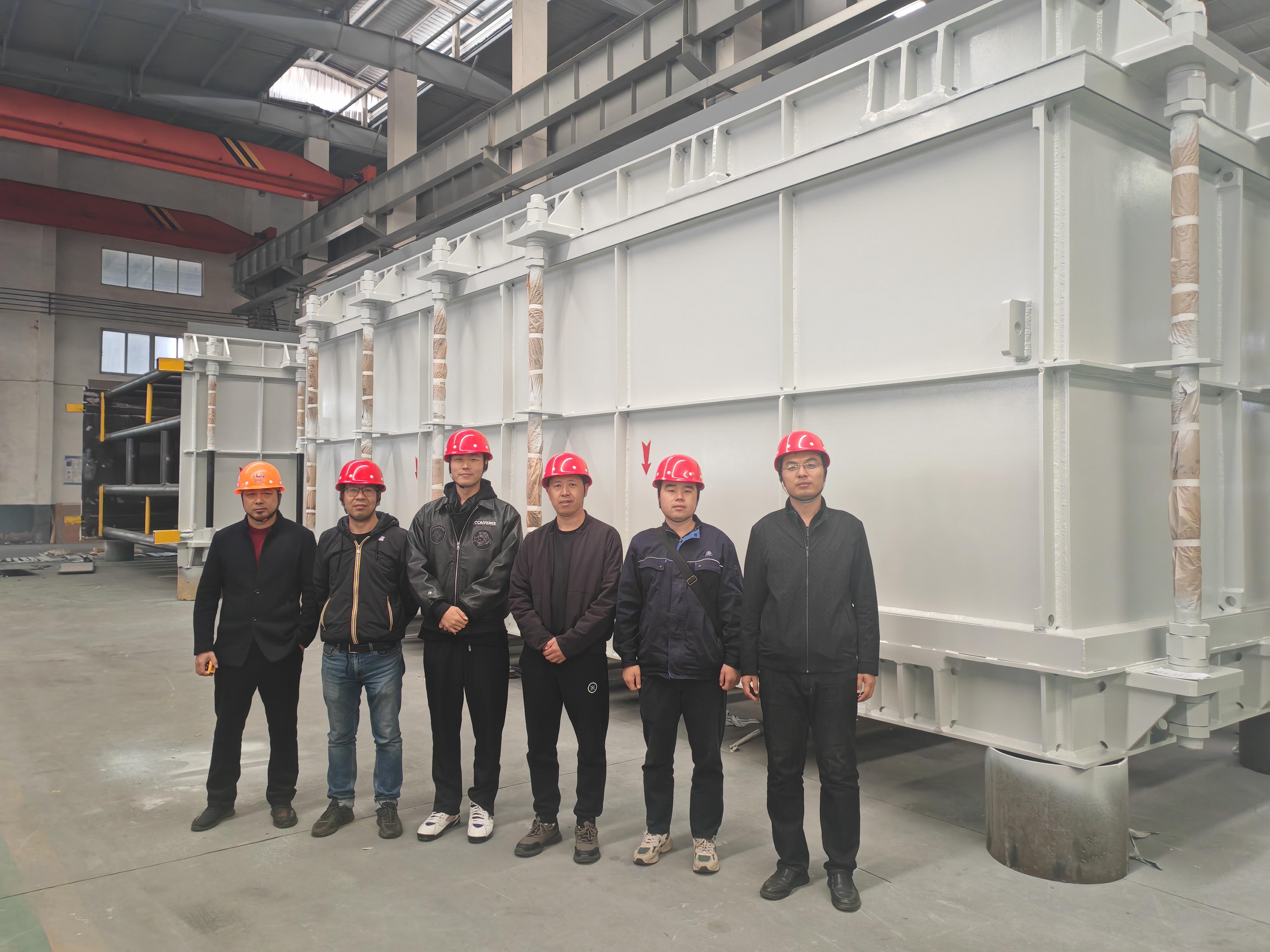 超大型產(chǎn)品對(duì)設(shè)計(jì)、生產(chǎn)、檢驗(yàn)、運(yùn)輸、現(xiàn)場(chǎng)組裝過程都提出了更高的要求。在設(shè)計(jì)過程中,突擊隊(duì)吸取問題產(chǎn)品的教訓(xùn),采用更適合的產(chǎn)品選型與更加穩(wěn)定的波形結(jié)構(gòu);對(duì)于產(chǎn)品整體的加強(qiáng)與支撐結(jié)構(gòu),采用有限元仿真進(jìn)行整體校核;在生產(chǎn)中,為保障大尺寸板材的焊接形變量與焊縫強(qiáng)度,關(guān)鍵部位的每一道加工工序、拼接方式都進(jìn)行嚴(yán)格梳理;因?yàn)楫a(chǎn)品的設(shè)計(jì)要求,如何保證產(chǎn)品分解運(yùn)輸與組裝后的可靠性成了重中之重,小組成員在分解組裝方案上進(jìn)行反復(fù)討論與修改,確保產(chǎn)品的每一道焊縫質(zhì)量足夠抵抗全真空的工作環(huán)境。面對(duì)項(xiàng)目即將完工時(shí)的突發(fā)狀況,突擊隊(duì)勇于創(chuàng)新、敢于擔(dān)當(dāng),在大家的通力配合下,項(xiàng)目順利通過了業(yè)主方與SGS項(xiàng)目驗(yàn)收。