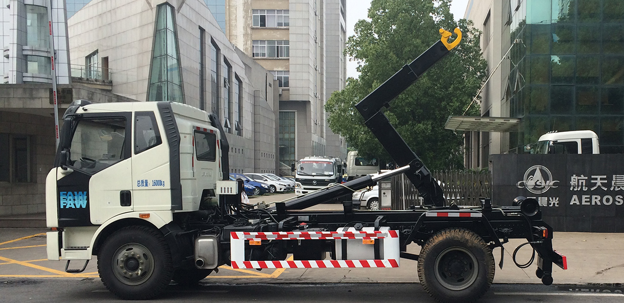 CGJ5160ZXXE4/CGJ5160ZXXE5型車廂可卸式垃圾車是收集居民小區(qū)、街道等處的城市生活垃圾并將其送往垃圾中轉站或將垃圾中轉站箱體運至垃圾處理場的專用車輛。
