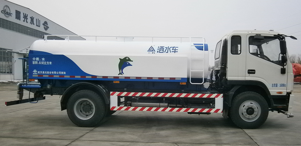 CGJ5162GSSE4型灑水車具有五大功能:a. 對路面進(jìn)行沖洗、灑水;b.運(yùn)輸功能;c. 應(yīng)急消防;d. 對樹木園林進(jìn)行噴洗、澆灌養(yǎng)護(hù);e. 作移動(dòng)泵站。是專門用于城鎮(zhèn)道路、公路、橋梁、工程、工地等路面沖洗、灑水、降塵以及園林綠化噴洗和澆灌的專用車輛。